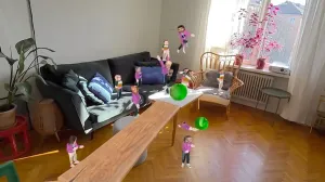 以开发《Demeo》、《SpatialOps》和《HomeSports》等知名游戏而闻名的ResolutionGames,一直以其对实验性游戏设计的热爱著称,并且往往是首批将Meta的新API集成到其游戏中的工作室之一。随着这款名为《二十家伙》的混合现实沙盒游戏几周前在MetaQuest的EarlyAccess中上线,该工作室进一步展示了其勇于尝试新事物的决心。一款为家带来混乱的"梗"游戏这款游戏从一个纸箱开始,打开后会释放出20个迷你人类,它们会跟随玩家到任何地方。玩家可以捡起这些小喽啰并把它们扔向公寓的各个角落,设置木制障碍和其他障碍物,让它们漂浮在房间内,或者用棒球棍和锤子敲打它们。游戏中的暴力元素是无害且卡通风格的:没有血液、断肢或其他类似的内容。不过,这些生物可能会尖叫、大笑或欢呼。这些面孔属于公司的员工。未来,当佩戴头显时,用户可以拍摄随机的脸部照片和图案,并将其应用到小喽啰的头部和服装上(见下方视频)。这得益于Meta全新的实验性PassthroughCameraAPI。ResolutionGames计划在未来添加更多物体和互动方式,以扩展游戏的可能性范围。《二十家伙》现在可以从Horizon商店免费下载,它支持MetaQuest3、3S、2及Pro设备。下载地址:https://www.meta.com/experiences/twenty-guys-early-access/8810972189011254/