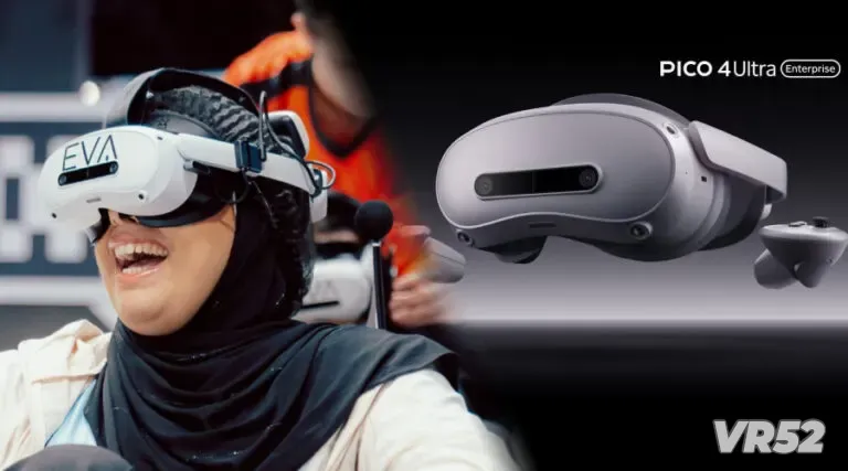 尽管官方尚未确认硬件配置,但从现场图片来看,《EVA Karting GP》极有可能采用 pico 4 Ultra Enterprise 头显。该设备搭载高通 Snapdragon XR2 Gen 2 芯片,并配备双 3200万像素彩色透视摄像头,能提供高精度环境感知与流畅MR体验,非常适合此类需精准空间定位与混合现实渲染的LBE(Location-Based Entertainment)场景。