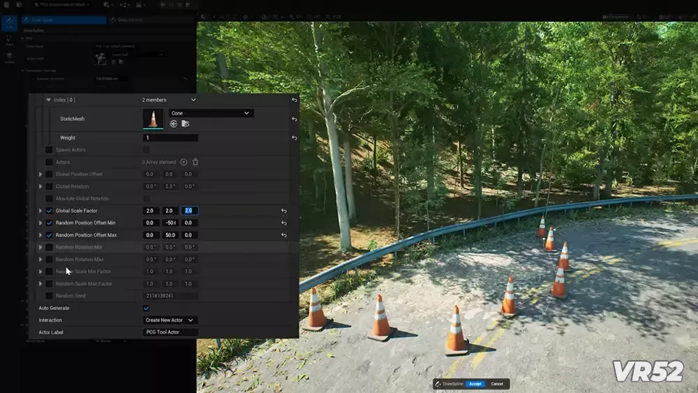 UE 5.7将此前处于预览阶段的程序化内容生成框架(PCG)正式纳入产品版。开发者可借助该系统高效自动生成地形、植被、建筑等环境元素,并支持创建具备自然变化的广阔世界。新增的PCG专用编辑器模式,允许通过样条线绘制、笔刷绘制或体积定义等方式直观操控生成逻辑。
