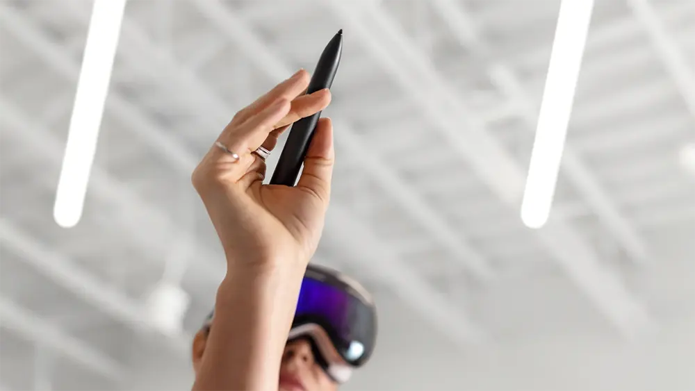 6自由度(6DoF)空间追踪:通过笔身内置的红外LED,由Vision Pro头显的摄像头阵列进行精准定位,实现空中三维空间的实时追踪。