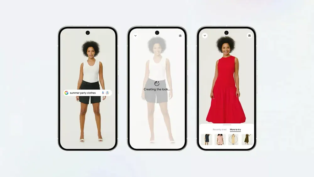 该功能依托谷歌先进的AI图像生成模型,能够精准理解人体结构与姿态,并还原面料的关键物理特性——如弹性、垂坠感与纹理细节。用户可借此尝试不同颜色、款式和搭配方案,获得接近真实的视觉反馈,显著降低因尺寸或版型不符导致的退货风险。