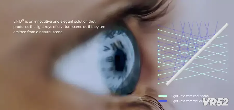 该 HMD 的核心是 PetaRay 自主研发的 LiFiD专利技术。不同于传统 AR 设备仅在一个固定焦平面显示虚拟图像,LiFiD 通过 重建物理世界中的真实光线路径,使虚拟内容能在任意距离(从几厘米到无限远)上呈现正确的聚焦深度。