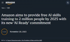 近日,亚马逊推出名为"AIReady"的计划,这项计划承诺到2025年为全球200万人提供免费的AI技能培训,包括如何利用生成式人工智能技术。三项新措施包括:8个全新的免费AI和生成式AI课程;亚马逊网络服务生成人工智能奖学金,为全球5万多名高中生和大学生提供在Udacity上学习新的生成人工智能课程的机会;与Code.org的新合作,帮助学生学习生成式人工智能。亚马逊的目标是填补人工智能人才的缺口,在与微软、谷歌和其他公司的人才争夺战中获得优势。
