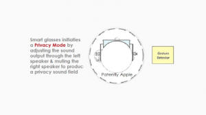 苹果一直在为其未来的智能眼镜开发音频系统。近日,美国专利商标局正式授予苹果公司一项专利,该专利与这种类型的智能眼镜音频系统有关,该系统还提供"隐私模式"。苹果专利涵盖了用户佩戴的头显为激活隐私模式而执行的方法。头显是一种音频设备(例如智能眼镜),包括配置为输出用户所需的音频内容(例如音乐)的耳外扬声器。与耳机扬声器相反,这些扬声器将声音投射到环境中,以便头显用户听到。这种声音的投射会产生一个声场,其他人(例如观察者)可以在声场中听到声音。当音频内容具有私人性质时(例如,与医生的电话),这可能是不理想的效果。为了防止观察者偷听扬声器产生的声音,头显用户可以激活隐私模式,这会减少扬声器的声音输出,从而减小声场的大小以仅包括用户。因此,原本在声场内的观察者无法再听到(或感知)声音。要激活隐私模式,头显会确定扬声器至少部分被遮住。当声级超过阈值水平时,表明扬声器和麦克风至少部分被遮住(例如,被用户的手遮住)时,就会激活隐私模式。苹果专利图1示出了用户在确定头显扬声器至少部分被遮住后,在一副智能眼镜上启动隐私模式的各个阶段。苹果专利图2示出了一个方面的控制器框图。控制器#200包括手势检测器#205、声场预测器#210、情境检测器#215和音频调节器#220。在一个方面,检测器、预测器和调节器可以在软件中实现(例如,作为指令存储在存储器中并由控制器执行),或者可以通过硬件逻辑结构实现。在另一方面,检测器和逻辑的实现方式可能彼此不同。