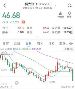 据新浪VR观察,10月24日,科大讯飞高开于52.1元/股,于午间时段持续跳水,股价大幅下挫至跌停。截至10月24日收盘,科大讯飞跌9.97%,报46.7元/股,市值当日蒸发逾119亿,总市值为1081亿元。而这场突如其来的股价震荡备受关注的原因,还在于当日恰逢第六届世界声博会暨2023科大讯飞全球1024开发者节开幕。且在会上,科大讯飞重磅推出了星火认知大模型V3.0,该模型由科大讯飞发布,至今已经多次升级迭代。据科大讯飞董事长刘庆峰介绍,该大模型产品可实现对标ChatGPT(GPT3.5)。早有端倪:第三季度营收下滑,系大模型等方面投入所致事实上,科大讯飞子今年1月起,股价便一路走高,从31元/股一度上涨至近10年最高点82元/股,在5月正式发布"讯飞星火认知大模型",并于6月、8月如期升级发布讯飞星火V1.5、讯飞星火V2.0,而也就是6月份,股价创下了81.88元新高。截至10月24日收盘,科大讯飞报收46.70元/股,相较于6月高点已经跌去逾42%。前不久,科大讯飞发布了第三季度财报,财报中显示,公司第三季度保持健康的经营发展态势:营业收入及毛利保持正向增长,实现营业收入47.72亿元,同比增长2.89%,毛利19.37亿元,同比增长3.62%。同时,科大讯飞表示该公司依然保持正向的经营性现金流,第三季度经营性现金流净额3.57亿元。但新浪VR注意到,科大讯飞第三季度归母净利润较上年同期减少1.16亿元,扣非后归母净利润较上年同期减少1.68亿元。另外,财报中显示,截至2023年9月末,科大讯飞的研发费用为24.98亿,相比去年同期同比增长7.19%,在同行业中位居第二。对此,科大讯飞在财报中解释道,主要原因系"公司积极抢抓通用人工智能的历史新机遇,在通用人工智能认知大模型等方面坚定投入。"科大讯飞表示,"尽管公司在核心技术自主可控方面所构建的全新能力,但公司在核心技术自主可控方面所构建的全新能力,以及在迈向通用人工智能的认知大模型方面取得的最新进展,为公司在数字经济时代长期可持续发展奠定了坚实基础和难得的先发优势。"最后,科大讯飞在财报中预告了将在10月24日如期发布的讯飞星火认知大模型V3.0,实现全面对标ChatGPT,同时,升级大模型代码能力,发布医疗大模型和讯飞晓医APP;全新发布AI答疑辅学(学习机应用)和AI心理咨询,并于12个龙头行业共同发布相关行业大模型提供生产力工具。野心勃勃:"整体超越ChatGPT,2024上半年对标GPT-4"虽然大模型的投入为科大讯飞的营收带来了不小压力,但在今年的开发者节上,科大讯飞董事长刘庆峰依然信心满满地给出了明确发展方向:他声称,"讯飞星火"3.0中文能力客观评测已经超越ChatGPT,英文能力对标ChatGPT48项任务结果相当。而在2024年上半年,要实现对标GPT-4。目前,对标GPT-4的更大参数规模的星火大模型正式启动训练。"聚焦无数目光的星火大模型,是否能如愿实现科大讯飞的美好愿景呢?据刘庆峰介绍,新一代星火大模型在文本生成、语言理解、知识问答、逻辑推理、数学、代码、多模态七大方面能力均获提升。这加速了讯飞星火的产业落地,多个行业针对性大模型共同发布:进一步升级智能编程助手iFlyCode2.0,针对科研人员推出星火科研助手;面向学生群体,推出AI心理伙伴关爱青少年心理健康,首次发布启发互动式英语AI答疑辅学并落地讯飞AI学习机;发布讯飞星火医疗大模型,打造个人AI健康助手;另外,讯飞机器人超脑平台迎来升级,亮相业界首个大模型+具身智能的人形机器人。此外,值得注意的是科大讯飞还宣布联合华为推出基于昇腾生态的"飞星一号"大模型算力平台。刘庆峰也提到,"我们今天发布的星火大模型3.0和代码都是在国产算力平台上做成的。"虽然看上去野心勃勃,最后刘庆峰也坦言,"国产大模型在复杂知识推理、小样本快速学习、超长文本处理、跨模态统一理解上,与GPT-4还有差距。"结语:发稿前,新浪VR关注到,科大讯飞盘中已在上涨,截至14:11分,报48.02元,换手率3.94%,总市值为1112亿。在股评中,仍有大部分人持看跌观点。大模型向来被看作是烧钱的存在,而从目前的业内状态来看,百度的文心一言、阿里的通义千问、腾讯的混元大模型、华为的盘古大模型都在混战当中。但在今年8月,据新华社研究院发布的大模型体验报告显示,讯飞星火以总分1013分位列本次国产主流大模型测评榜首位,《报告》认为讯飞星火在工作提效方面优势明显。因此,在激烈的竞争局面之中,科大讯飞是否能续写刘庆峰所提出的宏愿,新浪VR也将持续关注。