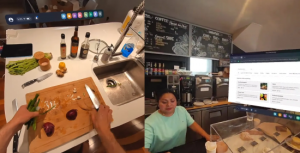 随着 MetaQuest3 发货,越来越多的开发者正在体验 Quest3 透视功能,并分享于社交媒体。Quest3并不是第一款带有全彩透视功能的头显。但与QuestPro不同的是,该头显摄像头分辨率高,足以看到细节内容,且具备了深度感知功能,因此不会使用户出现晕动症状。虽然外媒在评测中批评了Quest3透视不完善的问题,但已经不少开发者在日常生活中测试了这项功能。开发者 TassilovonGerlach 在Quest3透视功能中煮了鸡汤。他使用iPad和ChatGPT的新图像分析功能,根据拥有的成分获得定制食谱,然后在Quest虚拟浏览器窗口中打开该食谱,同时在另一个窗口中观看YouTube视频。《PuzzlingPlaces》开发者ShahriarShahrabi使用 Quest3 透视功能在浏览器中简单地观看YouTube视频,同时吸尘、洗碗和除尘。一边做家务一边观看YouTube视频显然是个对用户友好的示例,随着MR头显更物美价廉,MR体验甚至可能成为一种主流活动。与此同时,逆向工程爱好者ShinyQuagsire一边在厨房做饭,一边播放地铁冲浪者的视频,开玩笑地调侃这一潮流。这款手机游戏被用在表情包和笑话中,嘲笑当今许多人在没有持续刺激的情况下无法集中注意力--TikTok、Instagram和YouTube上的短视频经常把它和其他内容放在一起,以吸引观众的注意力。知名硬件分析师BradLynch在户外体验了Quest3透视功能,佩戴Quest3开启透视功能进行了骑行。Lynch表示,在骑行速度下,近距离失真非常明显,但远处的环境看起来"很棒"。VR艺术家兼开发者JayMayo带着这款头显参加了纽约动漫展,并在地板上走动,他写道:"就迷失方向的感觉而言,它并不是那么糟糕。"这是迄今最广受欢迎的特技,前XR开发人员CIXLiv是Meta直言不讳的批评者,他带着自己的Quest3走进旧金山的一家咖啡店,同时拿着一个显示菜单的虚拟浏览器窗口。TheVerge采访了这家咖啡店的老板,他说这只是一个"搞笑的噱头",但是咖啡师看起来并不像他点的那样开心。对于许多普通用户来说,在空间中生成任意虚拟浏览器窗口和应用程序的能力实际上比沉浸式VR或 MR 游戏更有吸引力,因为这与日常生活场景相融合,而不是成为一项单独的活动。目前这主要是由开发者和热情的早期采用者完成的,内容质量主要受限于头显舒适度和直通功能质量。但随着更轻薄、更高画质的Passthrough头显在未来几年到来,我们能看到passthroughAR在这个十年结束时成为数百万人日常生活的一部分吗?