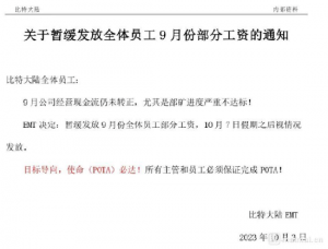 10月初,多名认证信息为比特大陆员工的网友在社交平台发文称,比特大陆由于现金流问题,所有员工9月份的绩效工资被全部扣掉,基本工资也被扣了一半,被扣掉的工资不知道啥时候才能发。截至10月8日,员工们都还没收到未发的工资,2022年的年终奖至今都没有发。根据网上流传的比特大陆EMT《关于暂缓发放全体员工9月份部分工资的通知》信息,停发工资原因或与比特大陆现金流不足有关,《通知》称:"9月公司经营现金流仍未转正,尤其是部矿进度严重不达标,EMT决定暂缓发放9月份全体员工部分工资,10月7日假期之后视情况发放。"通知还提到,所有主管和员工必须保证完成使命。薪酬风波不断10月17日,比特大陆再次被曝开除三名发布公司工资发放信息的员工,比特大陆称这三位员工给公司造成严重的负面影响,违反了公司的《对外信息披露管理规范》、《保密、不竞争及知识产权协议》、《劳动合同》、《员工手册》等规定。因此对该三名员工立即开除,永不录用,同时,公司已通报其处分意见给涉事实习生的所在学校,并保留追究所有涉事人员其他法律责任的权利。从法律的角度来看,比特大陆的公司内部规定俨然已经凌驾于《劳动法》之上,不但不反思自身停发、克扣员工工资的行为,反而不允许员工有一丝一毫的抱怨,甚至对实习生实行追责至其学校的恫吓行径,权利和义务的不对等在这家公司身上体现得淋漓尽致。据比特大陆官网信息,比特大陆是全球领先的区块链服务器厂商,旗下品牌ANTMINER长期在行业内保持技术和市场优势地位,客户覆盖全球100多个国家和地区,主要产品市场占有率全球第一。公司在美国、新加坡、马来西亚、哈萨克斯坦等地设有子公司。目前公司研发团队中硕士和博士学历员工占比超50%。在工资风波之前,今年4月比特大陆曾进行过一次薪酬改革,并且在进行绩效考核时加入"年龄分",基准年龄之上,年纪越大扣分越多。一位比特大陆员工透露,在改革后的薪酬调整方案中,原本的固定工资调整为基础工资+绩效工资两部分。在绩效考核时,最终的分数还与年龄挂钩,如果年龄超过基准线,绩效就要扣分。野蛮的权力游戏如果我们回顾这家知名矿机制造商的崛起之路,便会发现类似的野蛮生长、无视规则基因一直存在,从未改变。比特大陆成立于2013年,2018年8月完成B+轮融资后,比特大陆估值达到了150亿美元,于同年9月份赴港IPO。当时的招股书数据显示,比特大陆的核心产品是加密货币矿机ASIC芯片,全球市场占有率达到70%以上。矿机销售是该公司主要营收来源,占当时营收比重超9成。但在2018年后,整个加密市场迅速走向熊市,比特币价格一度跌至3500美元的低谷,比特大陆的IPO之路也就此折戟。在这期间,比特大陆的两位创始人詹克团和吴忌寒还陷入了一场夺权风波,先是吴忌寒于10月29日突然发难,将比特大陆工商信息上的董事长詹克团变更为自己,并宣称解除詹克团在比特大陆的一切职务。随后詹克团多次向北京海淀区司法局提起行政复议,申请撤销法定代表人变更,并恢复自己为法定代表人。在经历了比特大陆法定代表人反复变更,甚至吴忌寒方面公然在海淀行政服务中心抢夺营业执照等等闹剧之后,吴忌寒与詹克团达成和解:詹克团以6亿美元价格收购了吴忌寒部分股份,吴忌寒担任比特小鹿董事长并从比特大陆独立出去。内斗风波过后,比特大陆元气大伤,两位创始人走向了不同的发展道路。吴忌寒的比特小鹿则重点布局区块链基础设施建设,带领比特小鹿于今年4月14日在美国纳斯达克敲钟,目前总市值约8.7亿美元;詹克团的比特大陆业务主要聚焦在AI芯片和矿机芯片,但无论是加密市场的大环境,还是比特大陆自身的声誉和体量,均已不复当年。