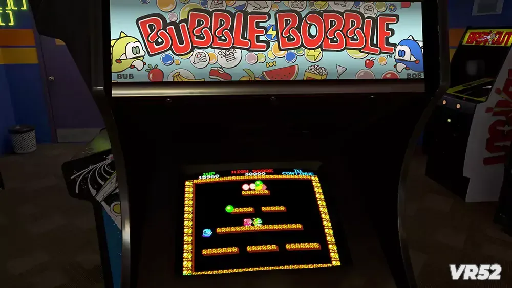 全虚拟环境:置身于精心复刻的1989年美国街机厅,霓虹灯、海报、地板纹理一应俱全。