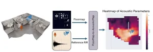 新视场声学合成(NVAS)正在获得业界的关注,特别是在增强现实和虚拟现实领域的发展中。然而,大多数现有方法存在局限性:它们推断时域的房间脉冲响应(RIR),这增加了优化的难度;专注于简单、单房间场景;仅能推断出单通道、方向无关的声学特性;并且需要输入如具有材质属性的3D几何网格。另一方面,研究表明在AR和VR中的感知合理性并不需要RIR的采样精度。诸如清晰度指数(C50)或混响时间(T60)等标准声学参数已证明能够描述RIR的相关特性,特别是对于后期混响。为了解决这些限制,芬兰阿尔托大学和Meta团队提出了一个新的任务--新视图声学参数估计方法。他们使用单个随机选择的RIR作为校准输入来建立模型对声学环境的理解,并将此任务框架为图像到图像的转换问题。通过这种方式,即使是使用VR眼镜的用户也能体验到更真实的声学效果。研究人员设计了一个模型架构,该架构能够利用简单的二维平面图形式的有限几何信息以及参考RIR作为输入,共同估计多个频带的多个空间分布声学参数。实验表明,所提出的方法显著优于统计基线,尤其适用于方向相关参数预测。此外,该方法可以在非常有限的信息下运行,在推理时只需要场景的大致轮廓和单个RIR。当致力于探索增强现实和虚拟现实技术以实现有效的娱乐、通信和远程呈现时,合理的声音表现是沉浸式体验的关键要求。研究表明,在封闭空间中使用精确的声学模型渲染虚拟声音可以提高可理解性和声音定位准确性,从而提升共存在感和联结感。例如,通过VR眼镜体验复杂多房间环境时,精准的声学模拟能够让用户体验到更加逼真的声音互动。团队基于NVAS先前的研究,介绍并提出了一种新任务--新视图声学参数估计(NVAPE)。这里,他们使用有限的几何信息来预测场景的二维声学参数,而无需精确的材质属性。同样,这种方法也使得佩戴VR眼镜的用户能够在虚拟环境中享受到更为真实的声学体验。总而言之,团队确定了一个新的任务--新视图声学参数估计。它不仅预测未见场景及任意源和发射器位置的声学参数,还用于调节混响器以产生RIR。研究人员提出的模型架构能够利用简单的二维平面图形式的有限几何信息以及参考RIR作为输入,共同估计多个频带的多个空间分布声学参数。这种创新方法不仅推动了NVAS领域的发展,也为VR眼镜提供了更加丰富的沉浸式体验。